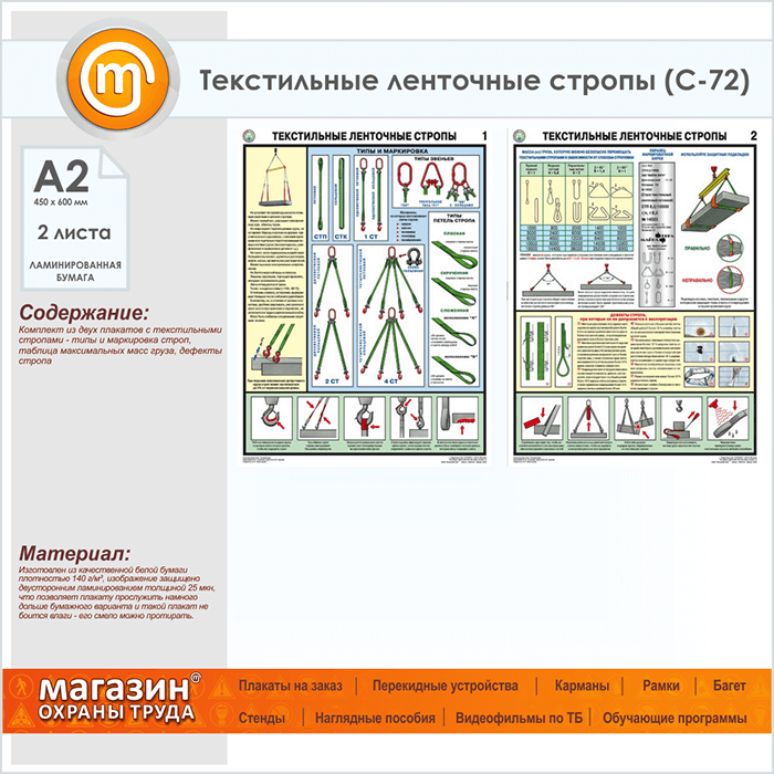 Плакаты «Текстильные ленточные стропы» (С-72, ламинированная бумага, А2, 2 листа) в Магнитогорске купить