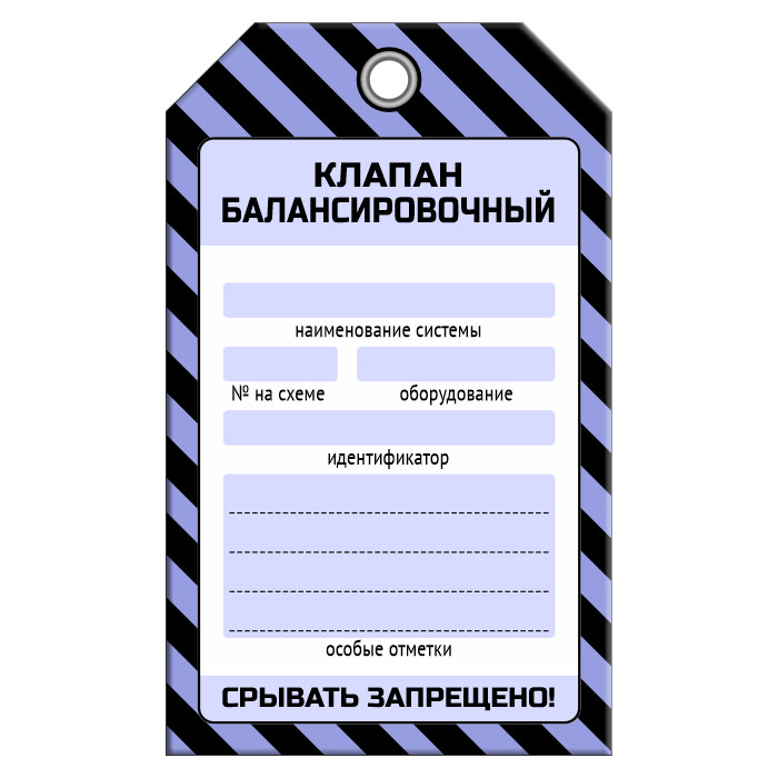 Бирка «КЛАПАН БАЛАНСИРОВОЧНЫЙ» (1 шт., односторонняя, пластик, 70х115 мм) в Магнитогорске купить