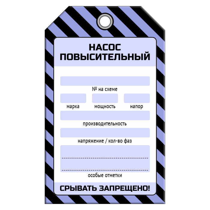 Бирка «НАСОС ПОВЫСИТЕЛЬНЫЙ» (1 шт., односторонняя, пластик, 70х115 мм) в Магнитогорске купить