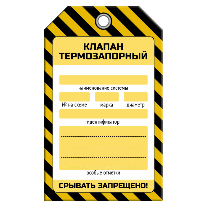 Бирка «КЛАПАН ТЕРМОЗАПОРНЫЙ» (1 шт., односторонняя, пластик, 70х115 мм) в Магнитогорске купить