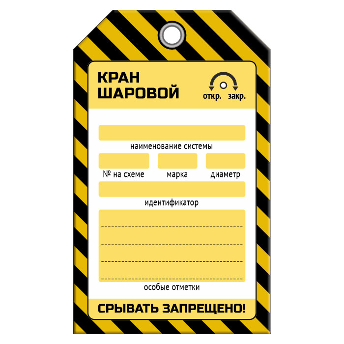 Бирка «КРАН ШАРОВОЙ» для газопровода (1 шт., односторонняя, пластик, 70х115 мм) в Магнитогорске купить
