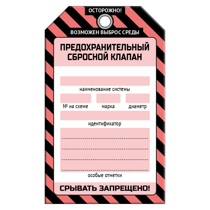 Бирка «ПРЕДОХРАНИТЕЛЬНЫЙ СБРОСНОЙ КЛАПАН» (1 шт., односторонняя, пластик, 70х115 мм) в Магнитогорске купить