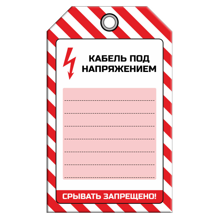 Бирка «КАБЕЛЬ ПОД НАПРЯЖЕНИЕМ», 2 вариант (1 шт., односторонняя, пластик, 70х115 мм) в Магнитогорске купить