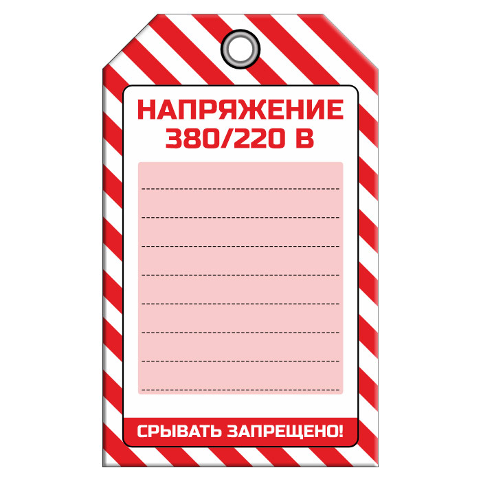 Бирка «НАПРЯЖЕНИЕ 380/220 В» (1 шт., односторонняя, пластик, 70х115 мм) в Магнитогорске купить