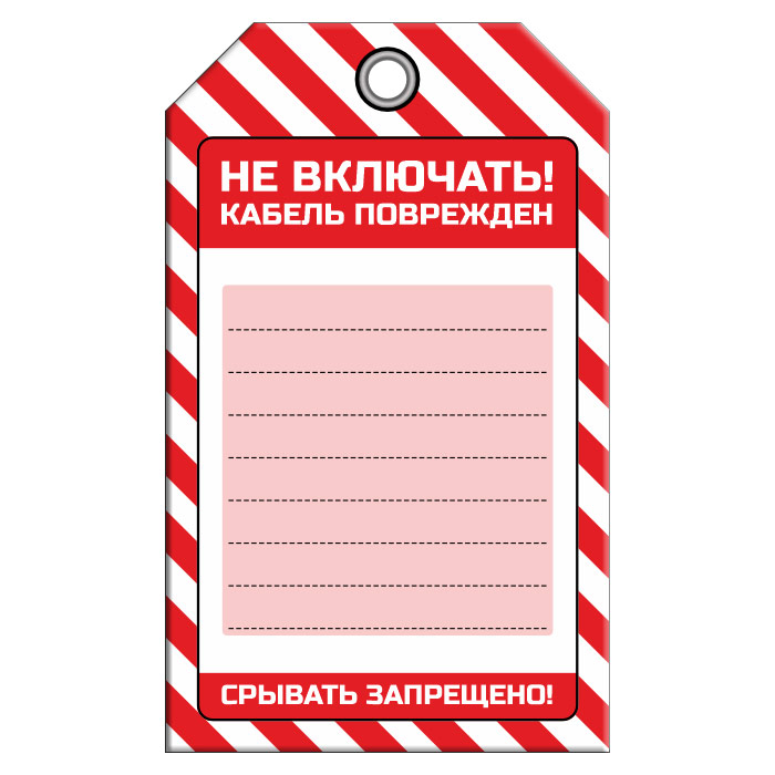 | Надпись: | «НЕ ВКЛЮЧАТЬ! КАБЕЛЬ ПОВРЕЖДЕН» |