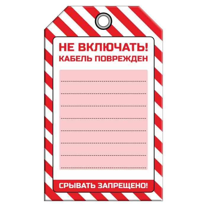 | Надпись: | «НЕ ВКЛЮЧАТЬ! КАБЕЛЬ ПОВРЕЖДЕН», 2 вариант |