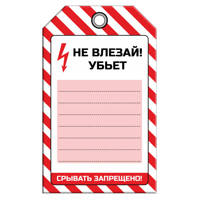 Бирка «НЕ ВЛЕЗАЙ! УБЪЕТ» (1 шт., односторонняя, пластик, 70х115 мм) в Магнитогорске купить
