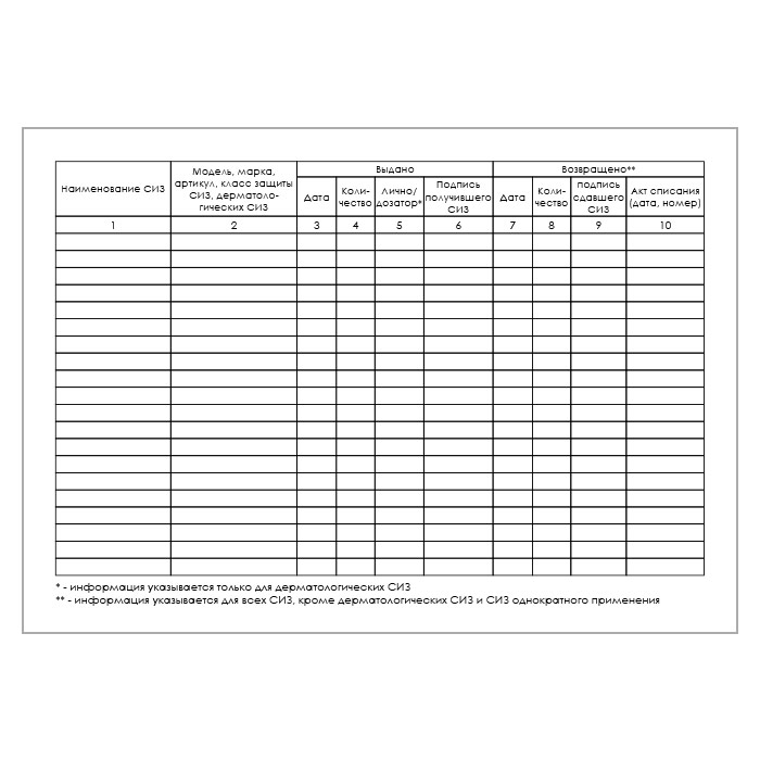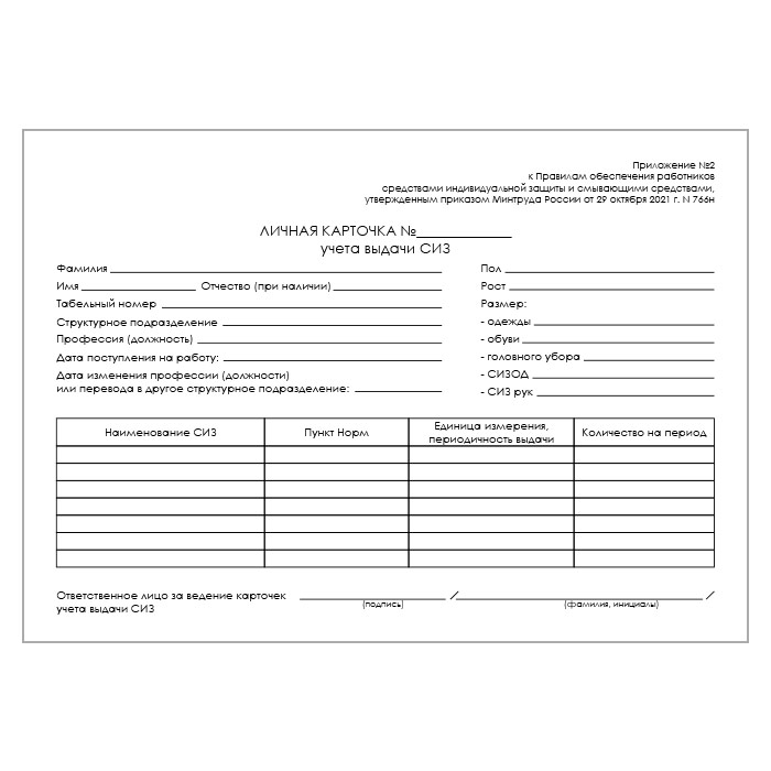 Карточка выдачи СИЗ (приказ Минтруда России от 29 октября 2021 г. №766н, упаковка 100 штук) в Магнитогорске купить