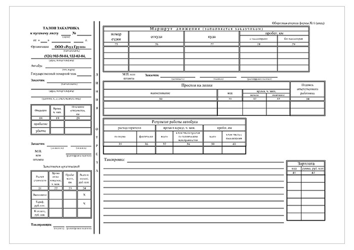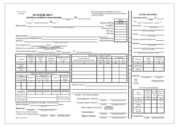 Путевой лист автобуса (форма № 6, упаковка из 100 штук) в Магнитогорске купить