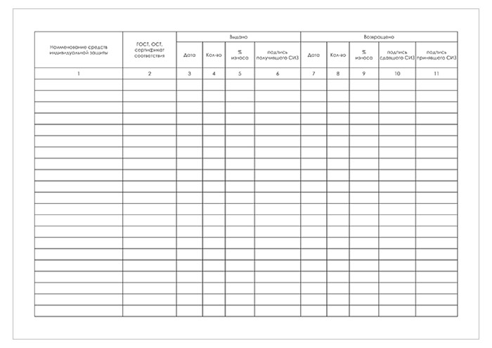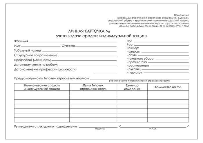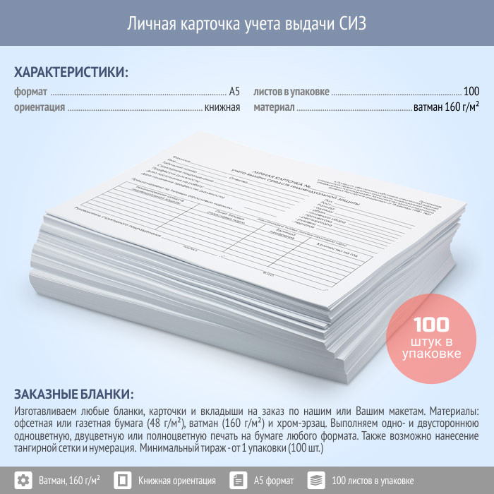 Карточка выдачи СИЗ (приказ Минздравсоцразвития от 01.06.2009 г. №290н, упаковка 100 штук) в Магнитогорске купить
