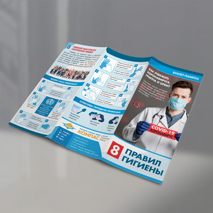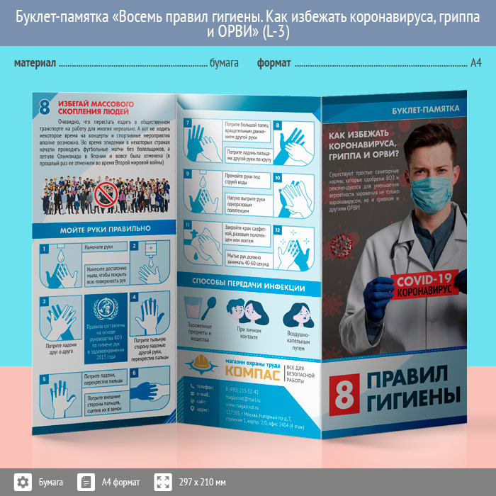 Буклет-памятка «Восемь правил гигиены. Как избежать коронавируса, гриппа и ОРВИ» (L-3) в Магнитогорске купить