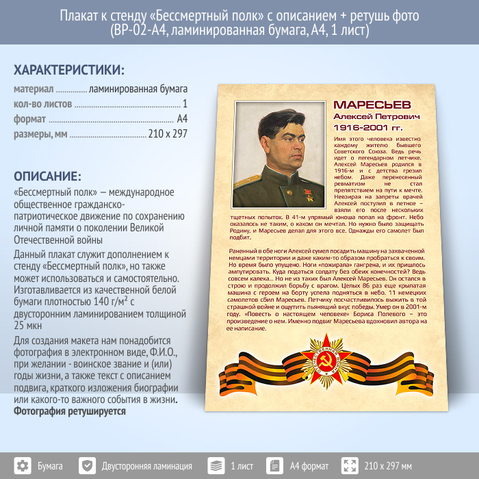 Плакат к стенду «Бессмертный полк» с описанием + ретушь фото (BP-02-A4, ламинированная бумага, А4, 1 лист) в Магнитогорске купить