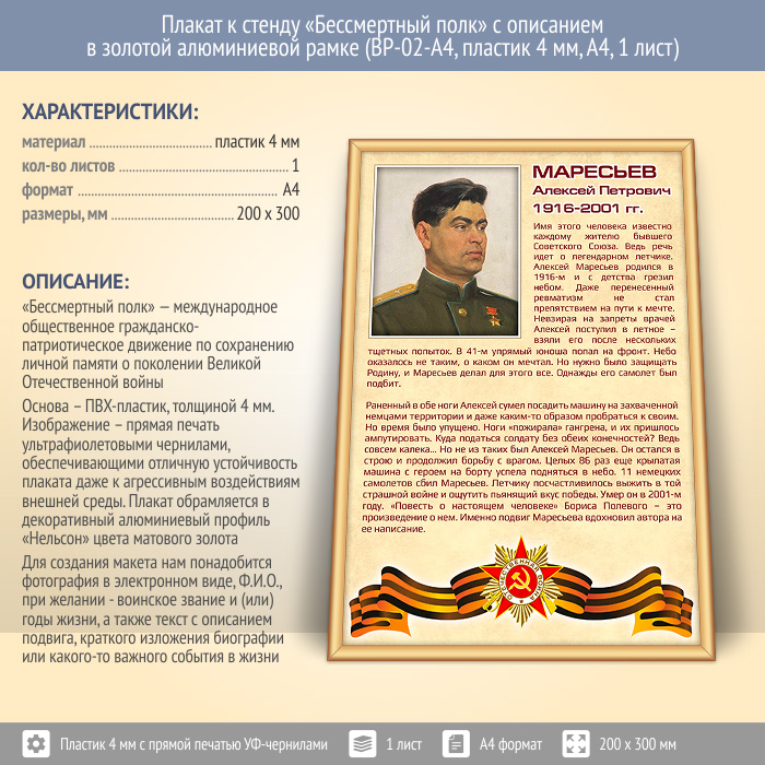 Плакат к стенду «Бессмертный полк» с описанием в золотой (матовой) алюминиевой рамке (BP-02-A4, пластик 4 мм, А4, 1 лист) в Магнитогорске купить