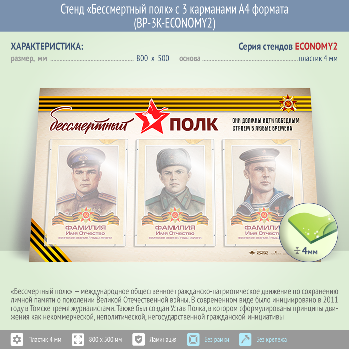 Стенд «Бессмертный полк» с 3 карманами А4 формата (BP-3K-ECONOMY2) в Магнитогорске купить