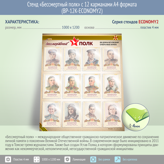 Стенд «Бессмертный полк» с 12 карманами А4 формата (BP-12K-ECONOMY2) в Магнитогорске купить