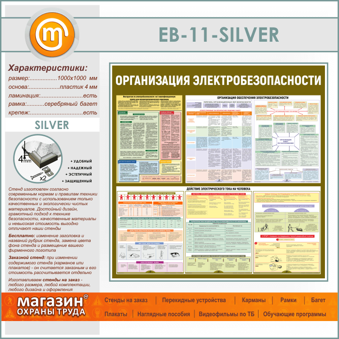 Стенд «Организация электробезопасности» (EB-11-SILVER) в Магнитогорске купить