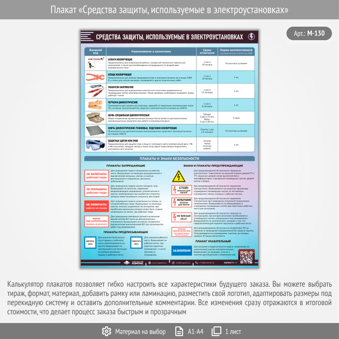 Плакат «Средства защиты, используемые в электроустановках» с QR (М-130, 1 лист) в Магнитогорске купить