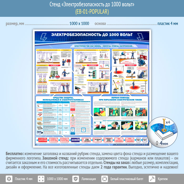 Стенд «Электробезопасность до 1000 вольт» (EB-01-POPULAR) в Магнитогорске купить