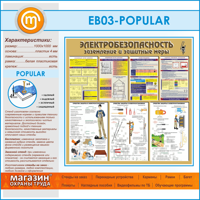Стенд «Электробезопасность. Заземление и защитные меры» (EB-03-POPULAR) в Магнитогорске купить