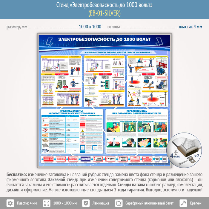 Стенд «Электробезопасность до 1000 вольт» (EB-01-SILVER) в Магнитогорске купить