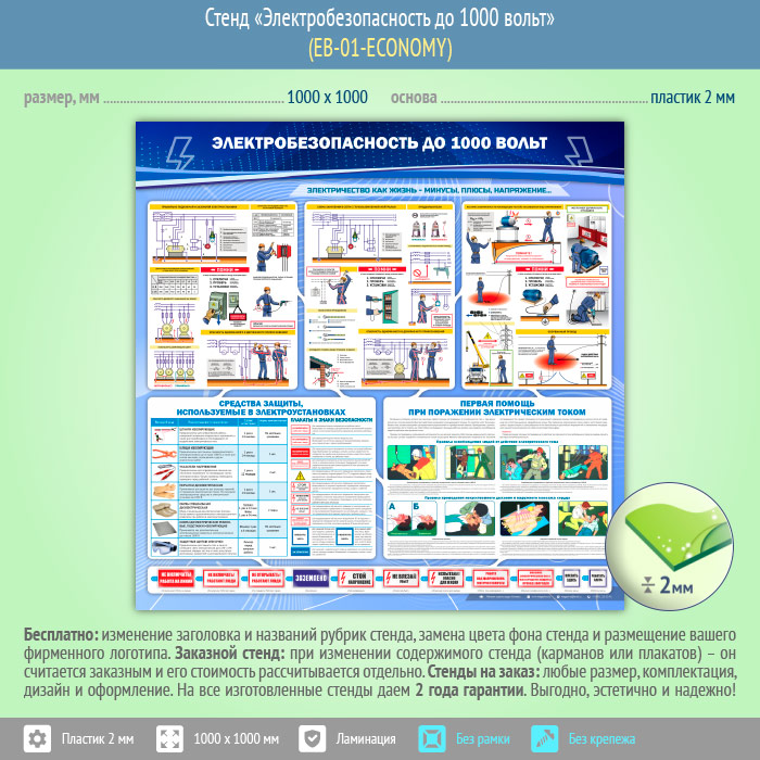 Стенд «Электробезопасность до 1000 вольт» (EB-01-ECONOMY) в Магнитогорске купить