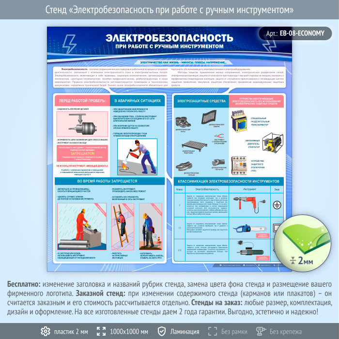 Стенд «Электробезопасность при работе с ручным инструментом» (EB-08-ECONOMY) в Магнитогорске купить