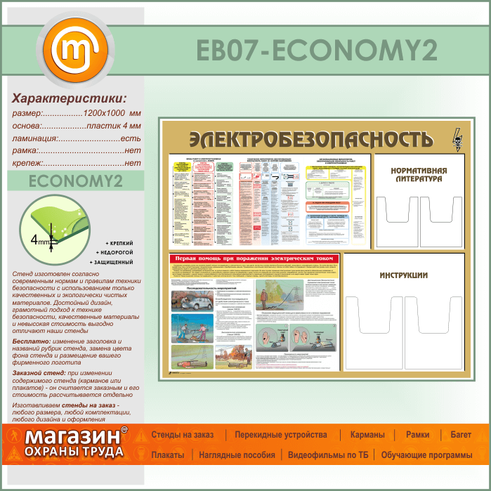 Стенд «Электробезопасность» с 4 объемными карманами (EB-07-ECONOMY2) в Магнитогорске купить