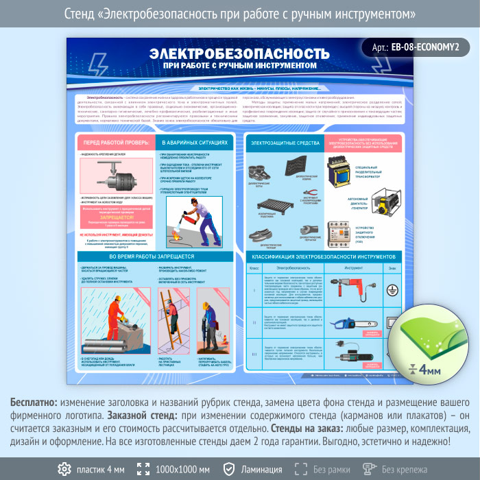 Стенд «Электробезопасность при работе с ручным инструментом» (EB-08-ECONOMY2) в Магнитогорске купить