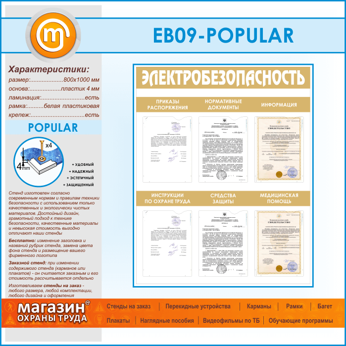Стенд «Электробезопасность» с 6 карманами (EB-09-POPULAR) в Магнитогорске купить