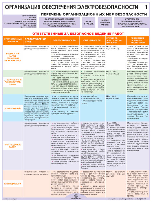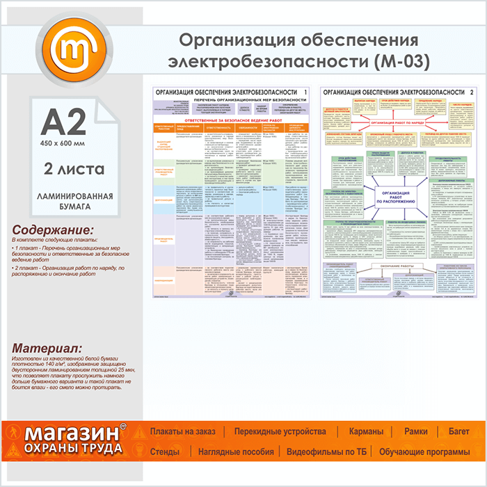 Плакаты «Организация обеспечения электробезопасности» (М-03, ламинированная бумага, А2, 2 листа) в Магнитогорске купить