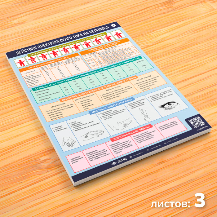 Плакаты «Действие электрического тока на человека» (М-04, ламинированная бумага, А2, 3 листа) в Магнитогорске купить