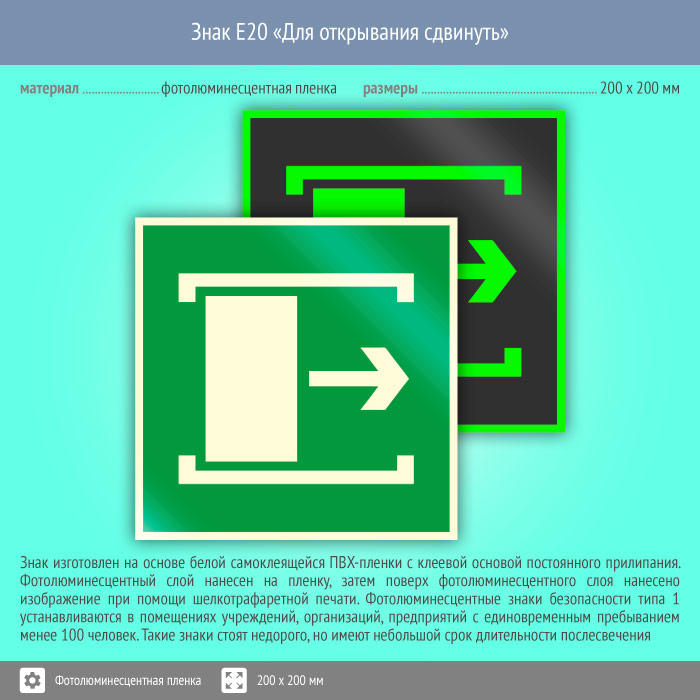 Знак E20 «Для открывания сдвинуть» (фотолюминесцентная пленка, 200х200 мм) в Магнитогорске купить