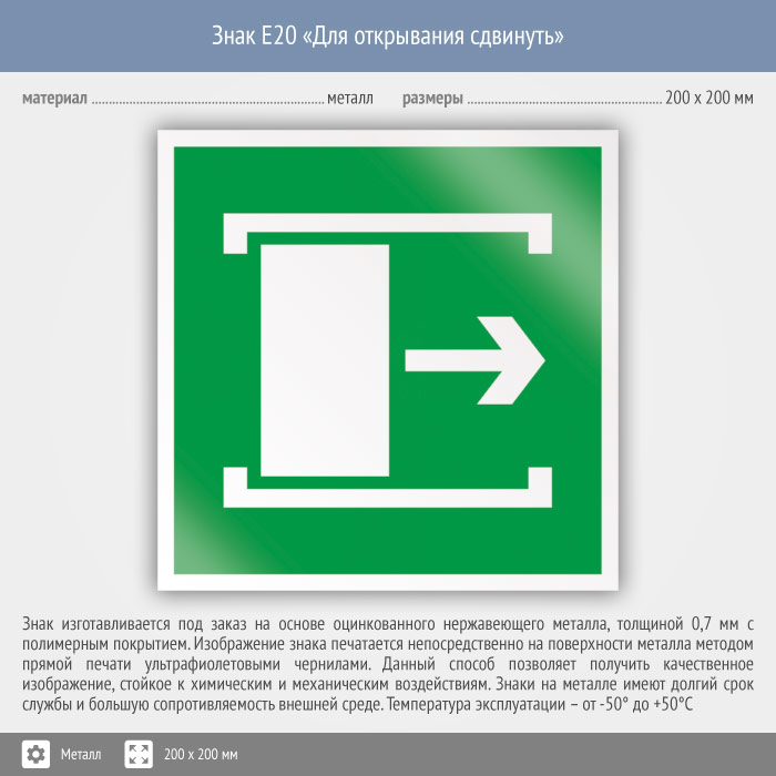 Знак E20 «Для открывания сдвинуть» (металл, 200х200 мм) в Магнитогорске купить