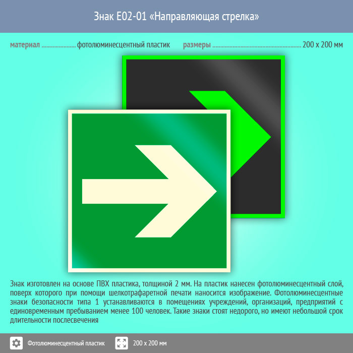 Знак E02-01 «Направляющая стрелка» (фотолюминесцентный пластик, 200х200 мм) в Магнитогорске купить