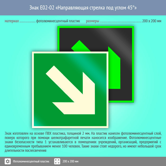 Знак E02-02 «Направляющая стрелка под углом 45°» (фотолюминесцентный пластик, 200х200 мм) в Магнитогорске купить