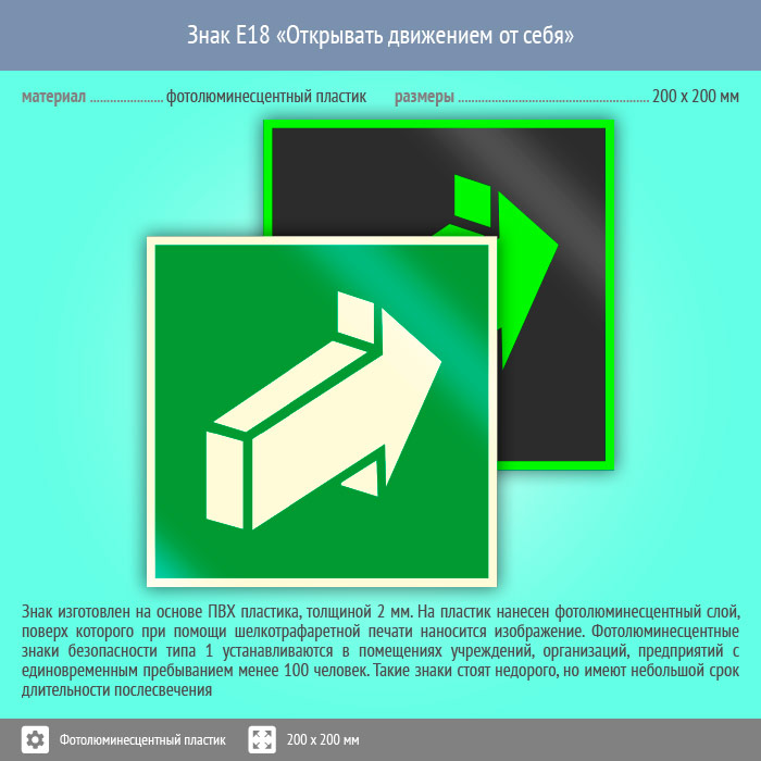 Знак E18 «Открывать движением от себя» (фотолюминесцентный пластик, 200х200 мм) в Магнитогорске купить