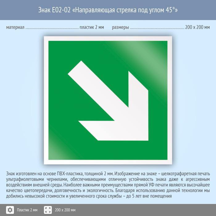 Знак E02-02 «Направляющая стрелка под углом 45°» (пластик, 200х200 мм) в Магнитогорске купить