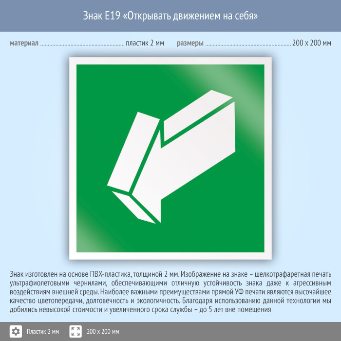 Знак E19 «Открывать движением на себя» (пластик, 200х200 мм) в Магнитогорске купить