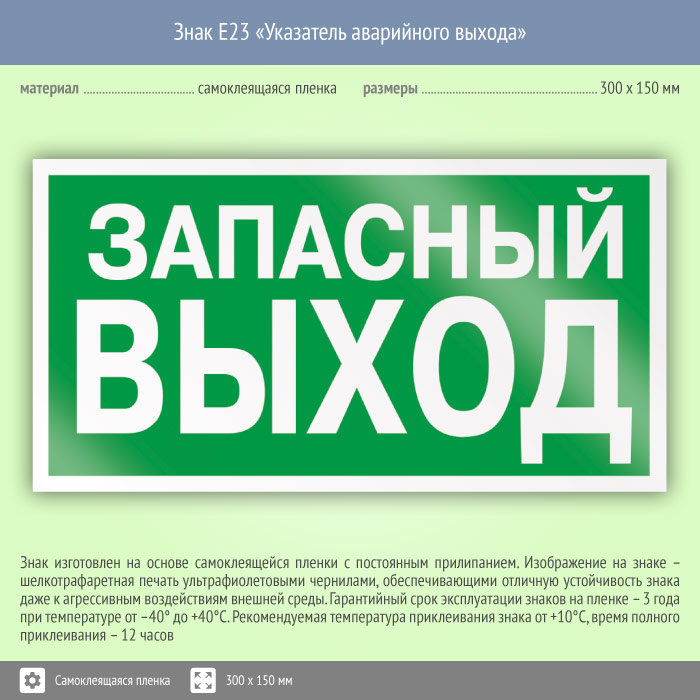 Знак E23 «Указатель запасного выхода» (устаревший) (пленка, 300х150 мм) в Магнитогорске купить