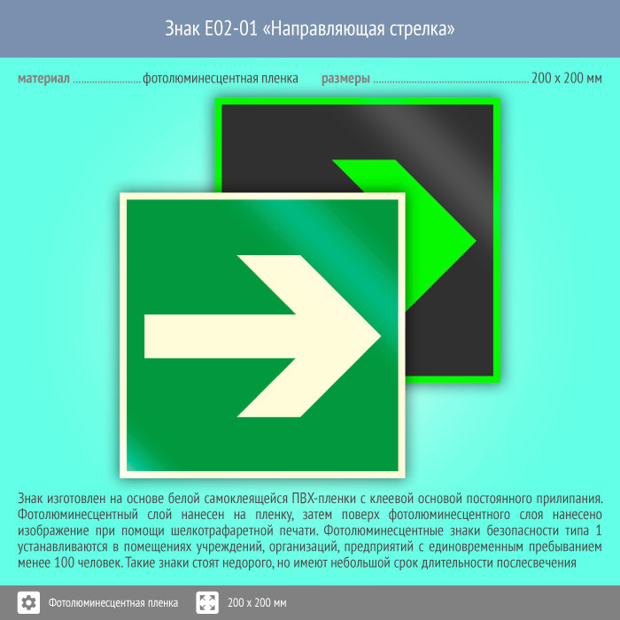 Знак E02-01 «Направляющая стрелка» (фотолюминесцентная пленка, 200х200 мм) в Магнитогорске купить