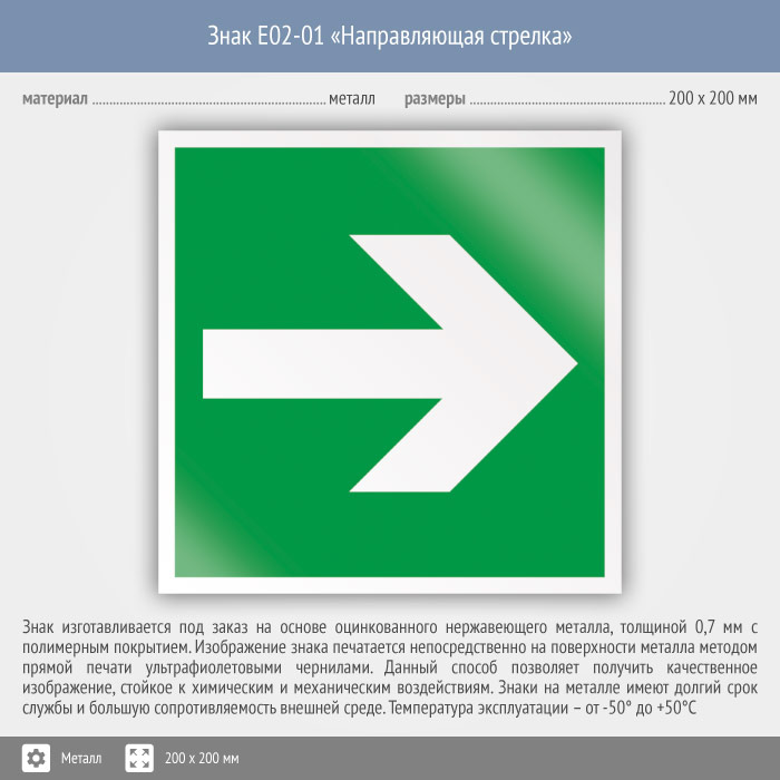 Знак E02-01 «Направляющая стрелка» (металл, 200х200 мм) в Магнитогорске купить