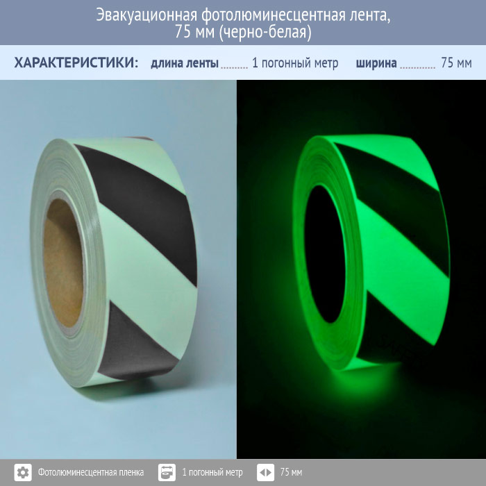 Эвакуационная фотолюминесцентная лента, 75 мм (черно-белая) в Магнитогорске купить