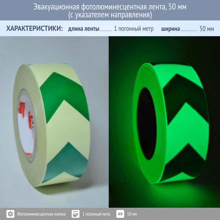 Эвакуационная фотолюминесцентная лента, 50 мм (с указателем направления) в Магнитогорске купить