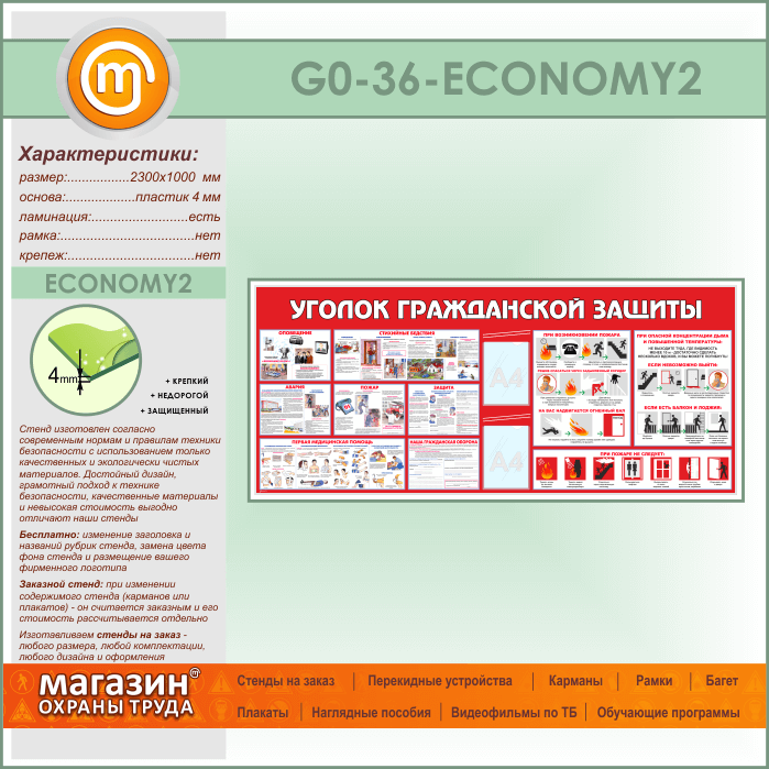 Стенд «Уголок гражданской защиты» c 2 карманами (GO-36-ECONOMY2) в Магнитогорске купить