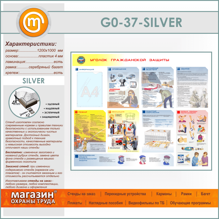 Стенд «Уголок гражданской защиты» с карманом (GO-37-SILVER) в Магнитогорске купить