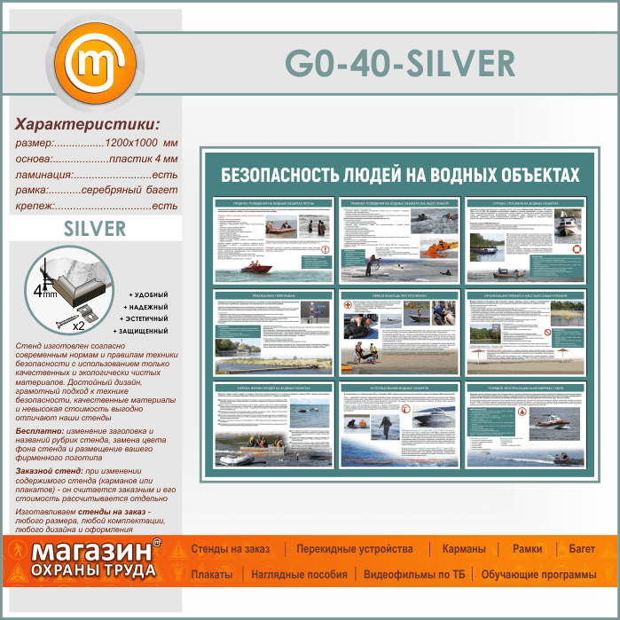 Стенд «Безопасность людей на водных объектах» (GO-40-SILVER) в Магнитогорске купить