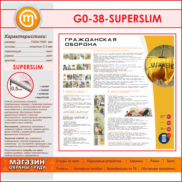 Стенд «Гражданская оборона» (GO-38-SUPERSLIM) в Магнитогорске купить