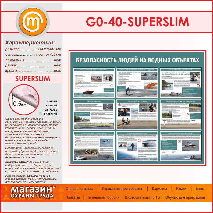 Стенд «Безопасность людей на водных объектах» (GO-40-SUPERSLIM) в Магнитогорске купить