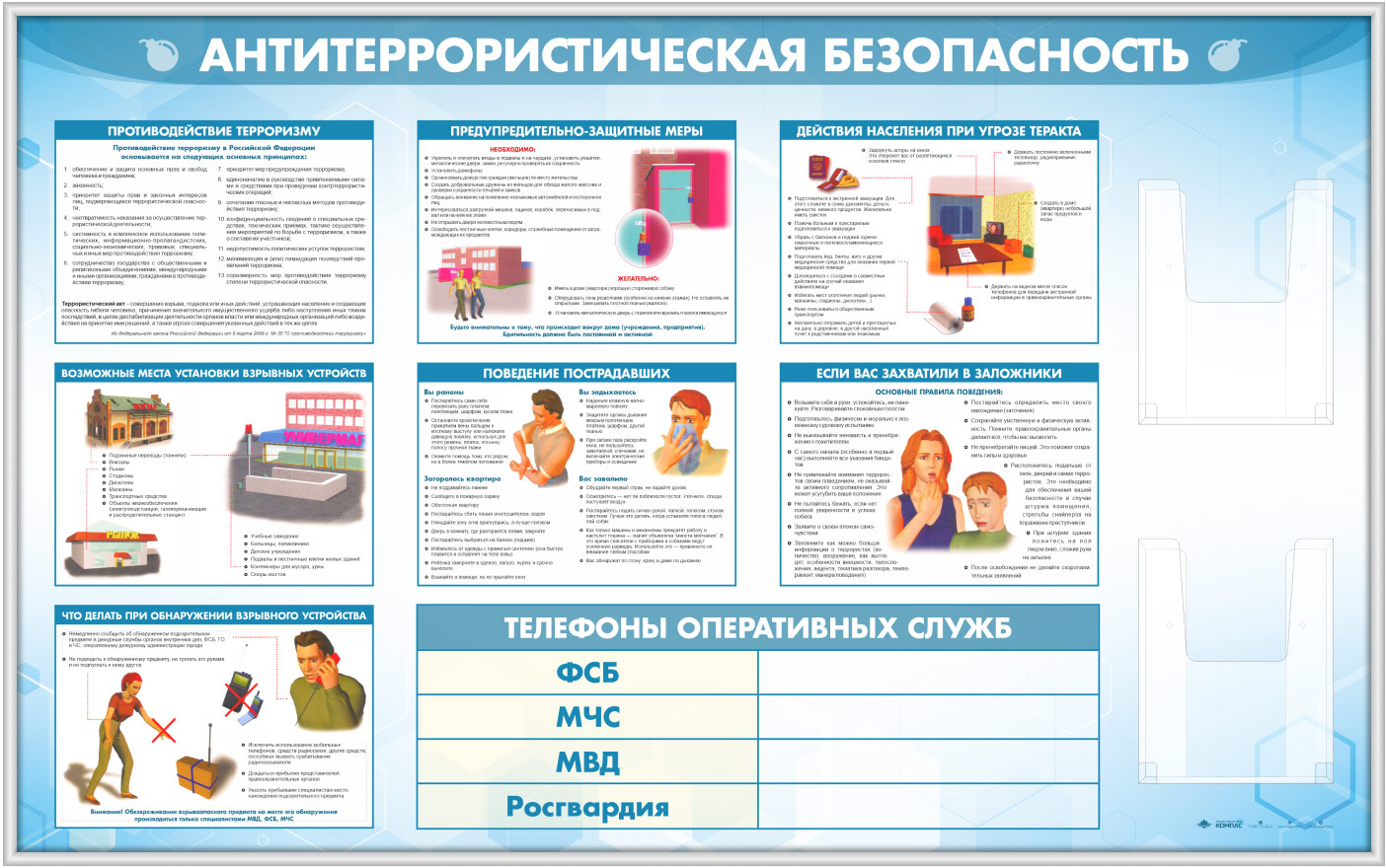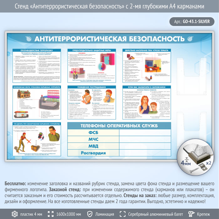 Стенд «Антитеррористическая безопасность» с 2-мя глубокими А4 карманами (GO-43.1-SILVER) в Магнитогорске купить