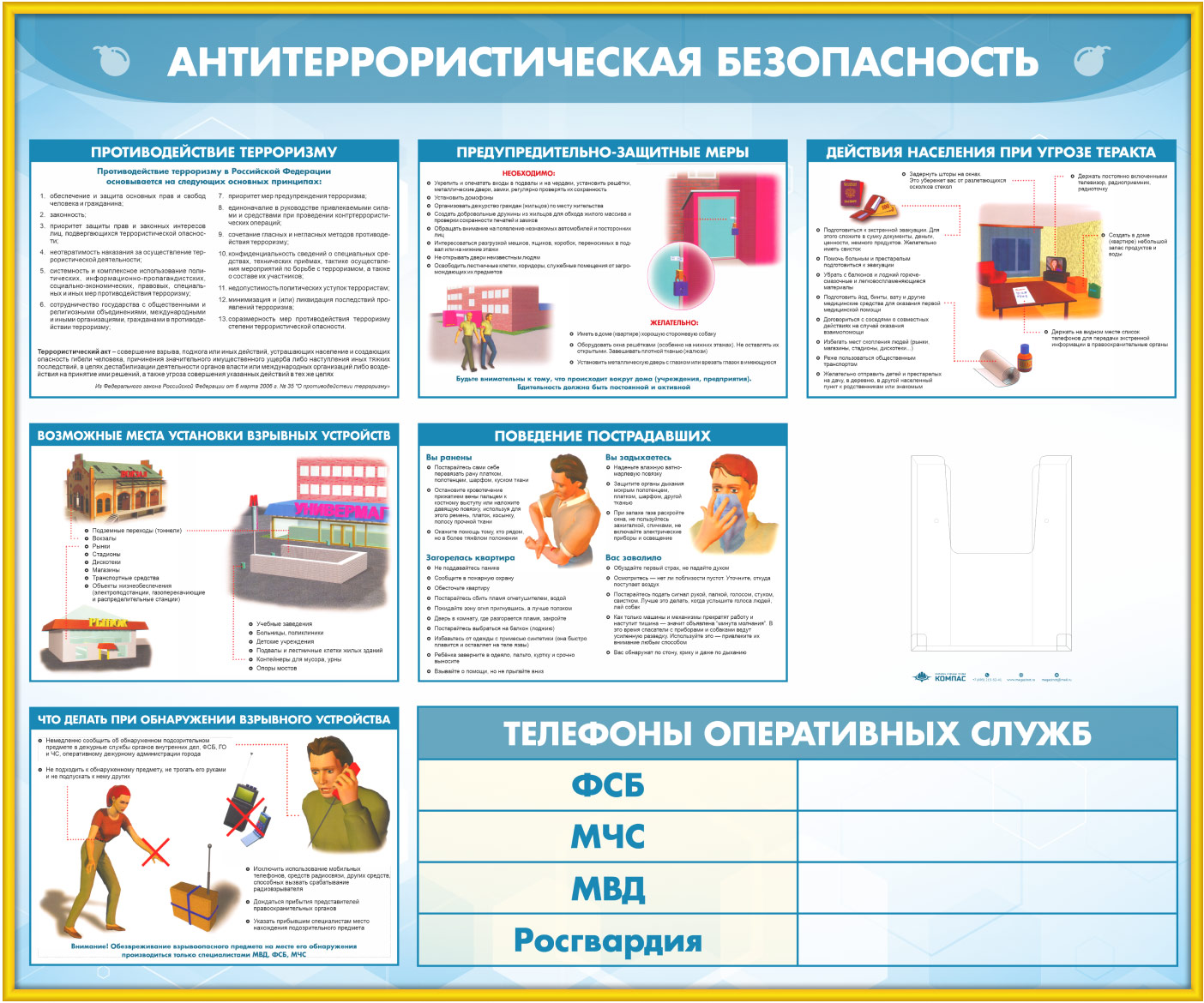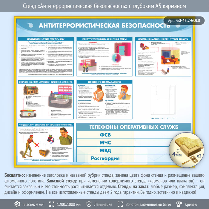 Стенд «Антитеррористическая безопасность» с глубоким А5 карманом (GO-43.2-GOLD) в Магнитогорске купить
